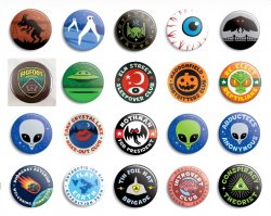 Cryptids, Aliens & Monsters Pinback Buttons - 26 Designs to choose from.